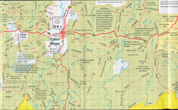 Coverage is from the Princes Highway to the coast including Cape Conran, Yeerung River, Dock Inlet, Sydenham Inlet, Tamboon Inlet, Point Hicks, Thurra River, Mueller River and Wingan Inlet.