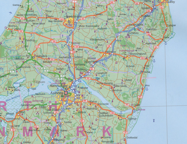 The country side is new digital artwork covering the entire country, showing motorways main and secondary roads, as many town names as we could find, touristic attractions, parks, camping areas, and anything else that we felt a visitor might want to see on a travel map. Denmark is relatively flat, so is a great place for long-distance cycling. The country has the well-known Helsingor Castle (Hamlet’s Castle in Shakespeare), Roskilde Cathedral, the aldstadt of Odense, the crane nests of Ribe, and much more to entice. This map also brings our European series one step closer to comprehensive completion.