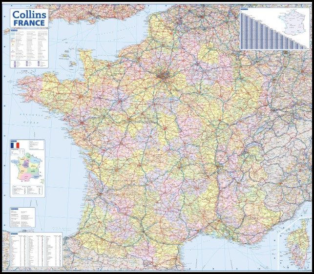 The map shows the road network in detail for easy route planning. With its political colouring of departments, it is ideal for reference and business users also.
