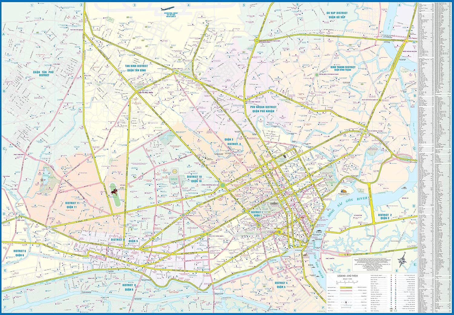 Ho Chi Minh City isn’t a city, but a region. Saigon still remains the name of the city portion, but political reality being what it is in VN, the regional name is always used, so we do so as well. Being the economic heartland of VN, this area has the greatest concentration of population and the highest level of prosperity in the country. This map updates a fast-changing city to reflect its changing features. With this edition, we have doubled-up the map by adding a map of the Mekong Delta to the reverse side.