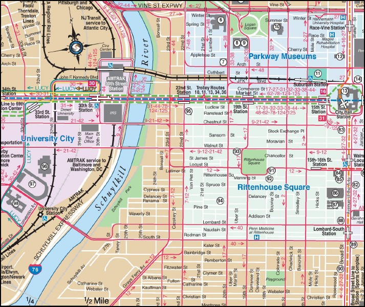 Philadelphia City Centre Street Transit Map