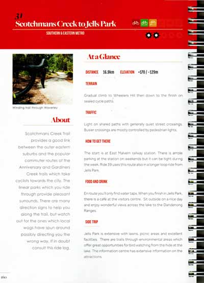 This book features 40 recreational rides, all within an hour’s radius of the Melbourne GPO and is aimed at recreational cyclists, including families with children looking for something to do on the weekend and mature age cyclists looking for fitness and fun.