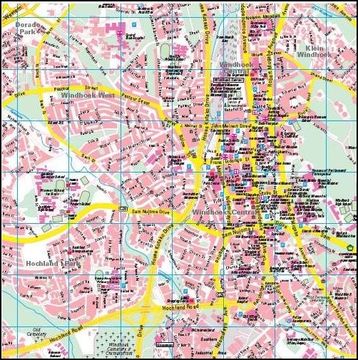 City map of Windhoek: clearly legible, small register.