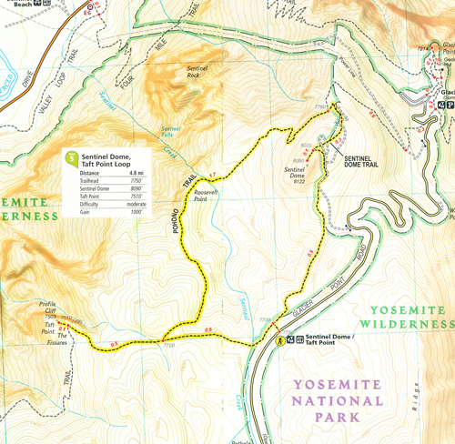 The Yosemite National Park Day Hikes Topographic Map Guide includes eighteen diverse hikes for all hiking enthusiasts, from the easy, 2.8 mile long Hetch Hetchy Valley Overlook to the strenuous, 14.7 mile long Laurel Lake Trail with 3,900′ of elevation gain. Each hike has a detailed map, a trail profile visualizing the changes in elevation, and a short summary of the interesting features encountered along the trip.